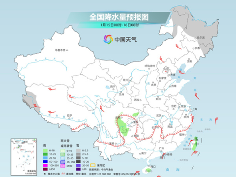明天,我国降水天气将继续缩减,内蒙古东北部、黑龙江大部、吉林东北部、西藏西部等地部分地区有小雪或雨夹雪,其中,西藏西南部部分地区有中雪。四川盆地东部和南部、贵州西北部、云南东北部、海南岛东南部、台湾岛东部等地部分地区有小雨。