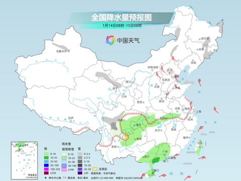 今明两天(1月14日至15日),一股较强冷空气将继续东移南下影响中东部大部地区,江南、东北等地局地降温幅度可超8℃。不过,冷空气来去匆匆,16日前后我国大部再度升温,并将在大幅偏暖中进入“四九”。气温起起伏伏,公众需注意及时增减衣物,谨防感冒。同时,我国大部雨雪稀少,南方多地气象干旱发展,特别是广西、广东、湖南等地局地出现特旱,需加强防范。